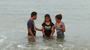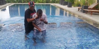Pastor Lucas, and Sister Jesy, baptizing Noi.